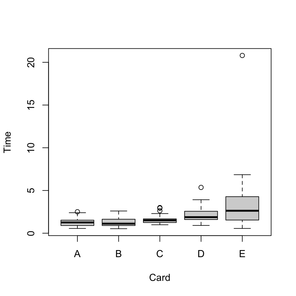 Suppose we were most interested in “summary statistics” of the response times for interactions with card “D”.