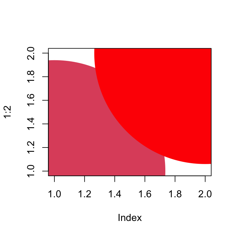 plot(1:2, pch =19, cex =50, col =c(2, "red"))