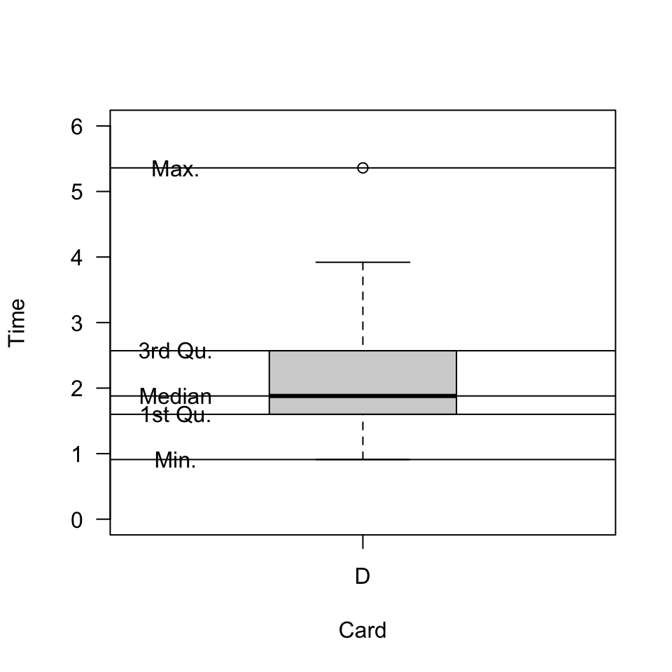 are categorical, so it might take a bit of scratchwork to determine sensible, numerical input values.The boxplot easily shows some major summary statistics. Sometimes we want more resolution.