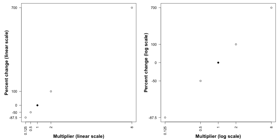 Fortunately we do not have to worry about the horizontal axis (here representing “time”) because that pretty much only makes sense on a linear scale.