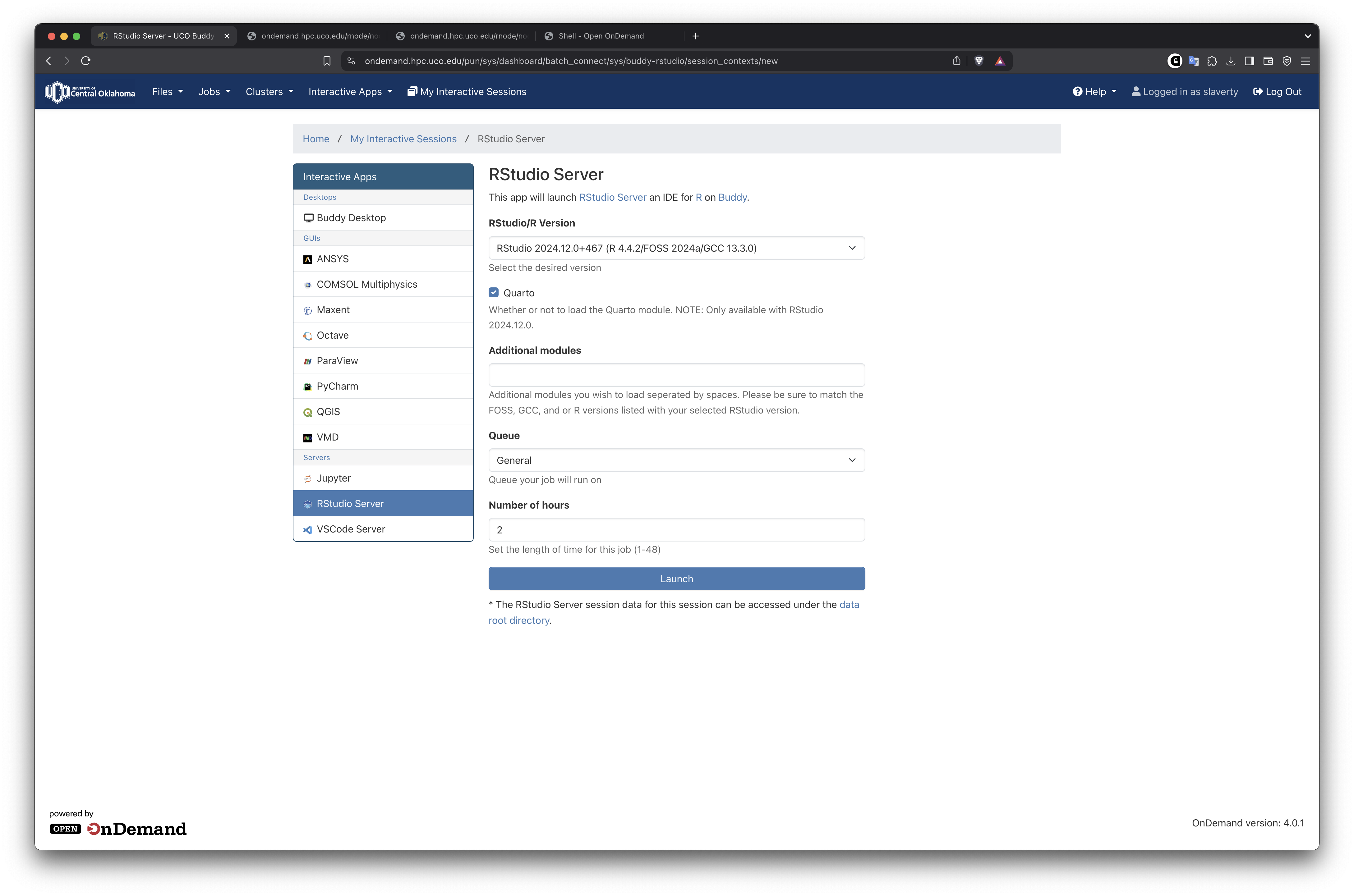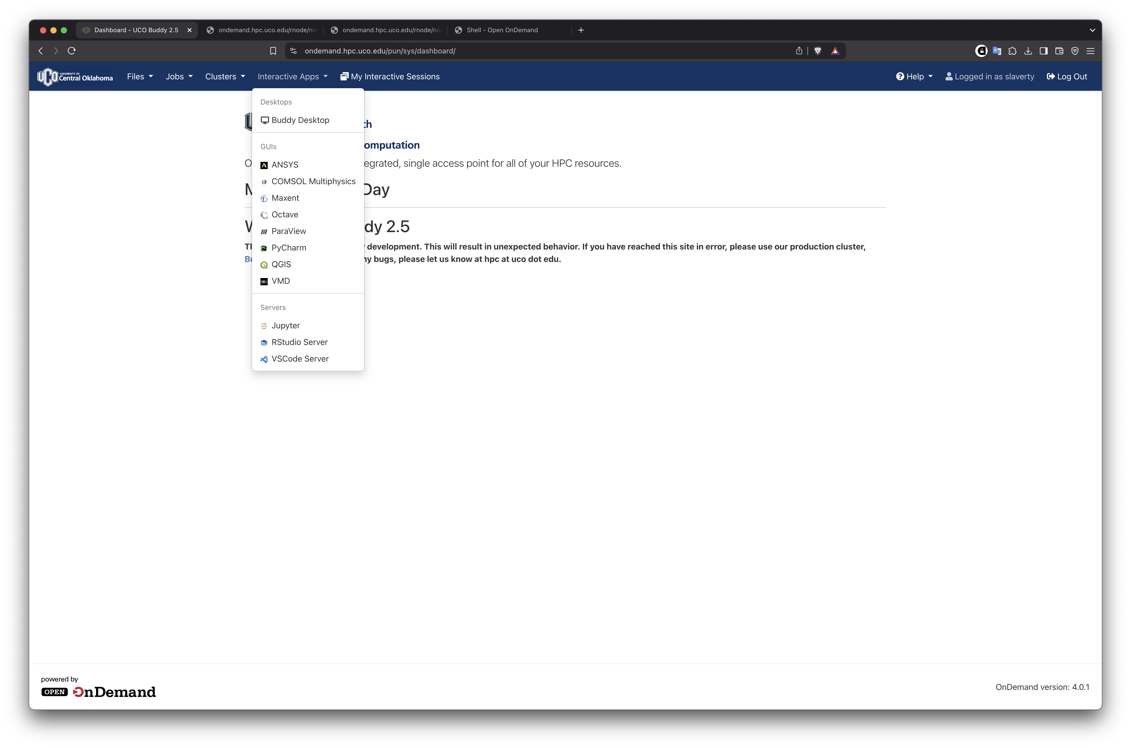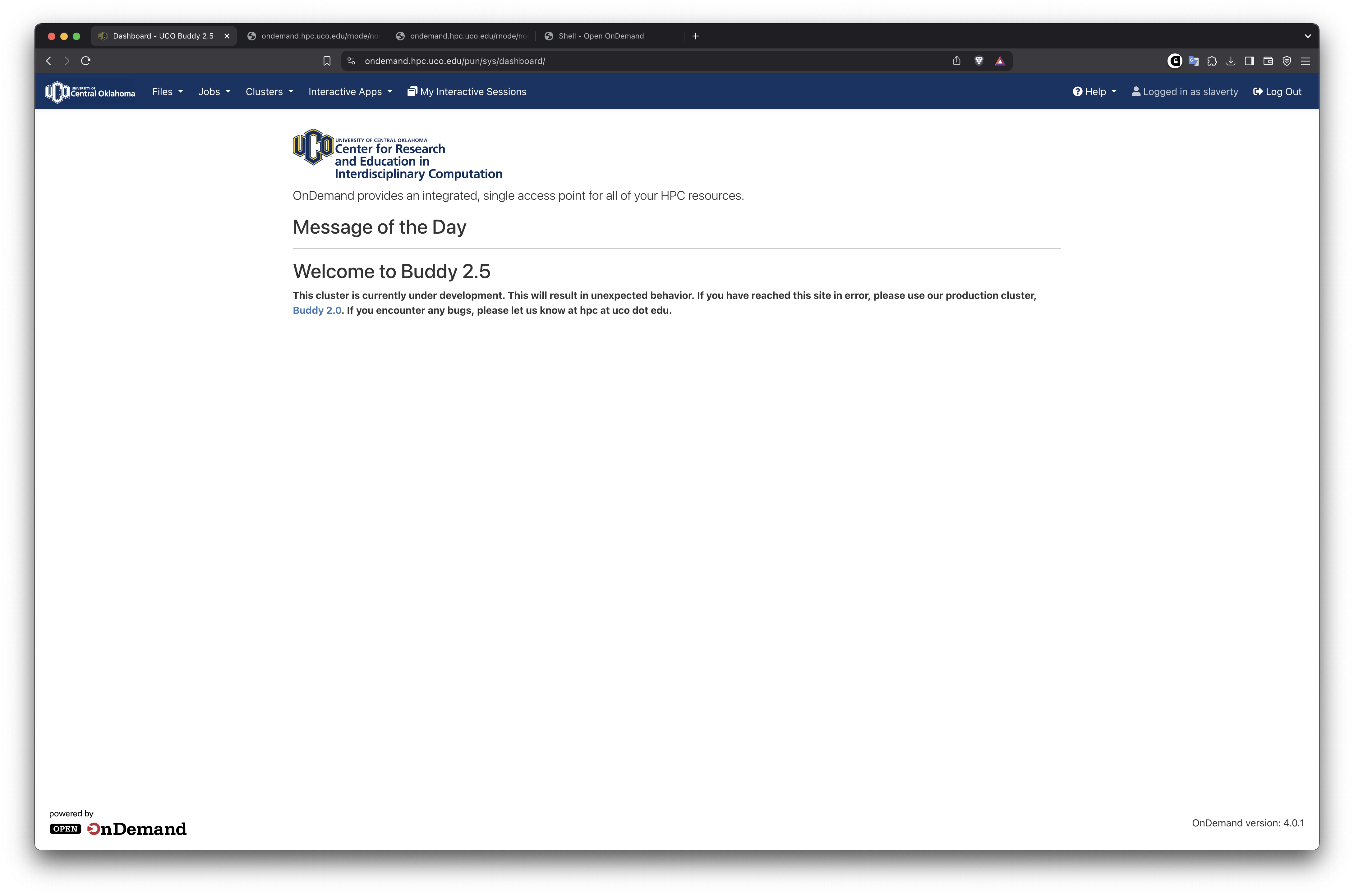 Visit https://ondemand.hpc.uco.edu/ to access Buddy HPC resources.