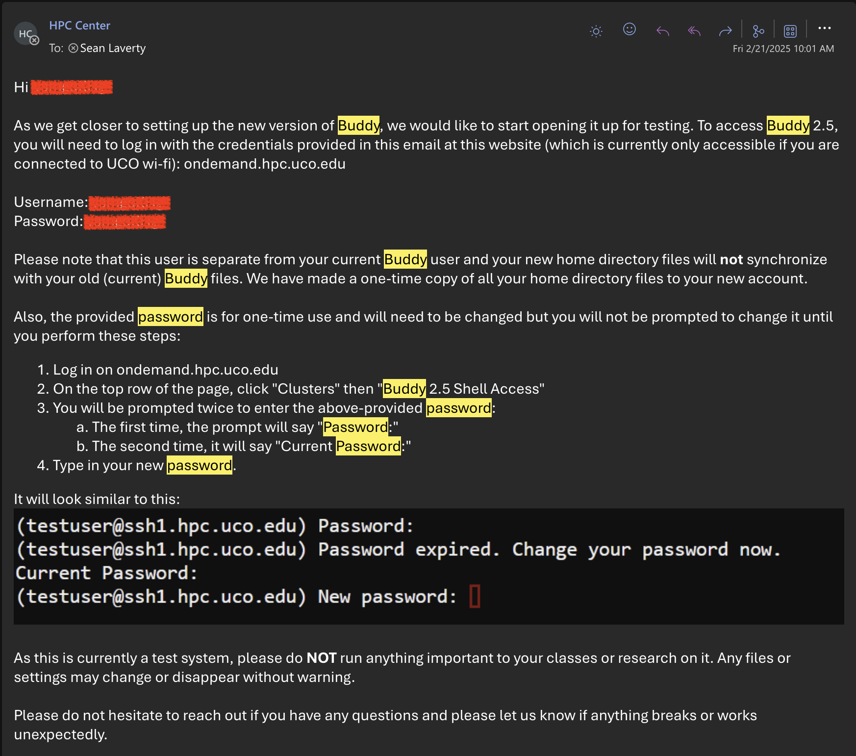 Before getting too far, check your UCO email for an email that contains the words “buddy” and “password”.